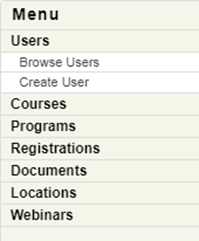 - Users: Browse and create users in the system. You can view and change user information, add new users, view transcripts, enroll/remove users from courses, check/change a user’s completion status, import users and merge duplicate accounts.